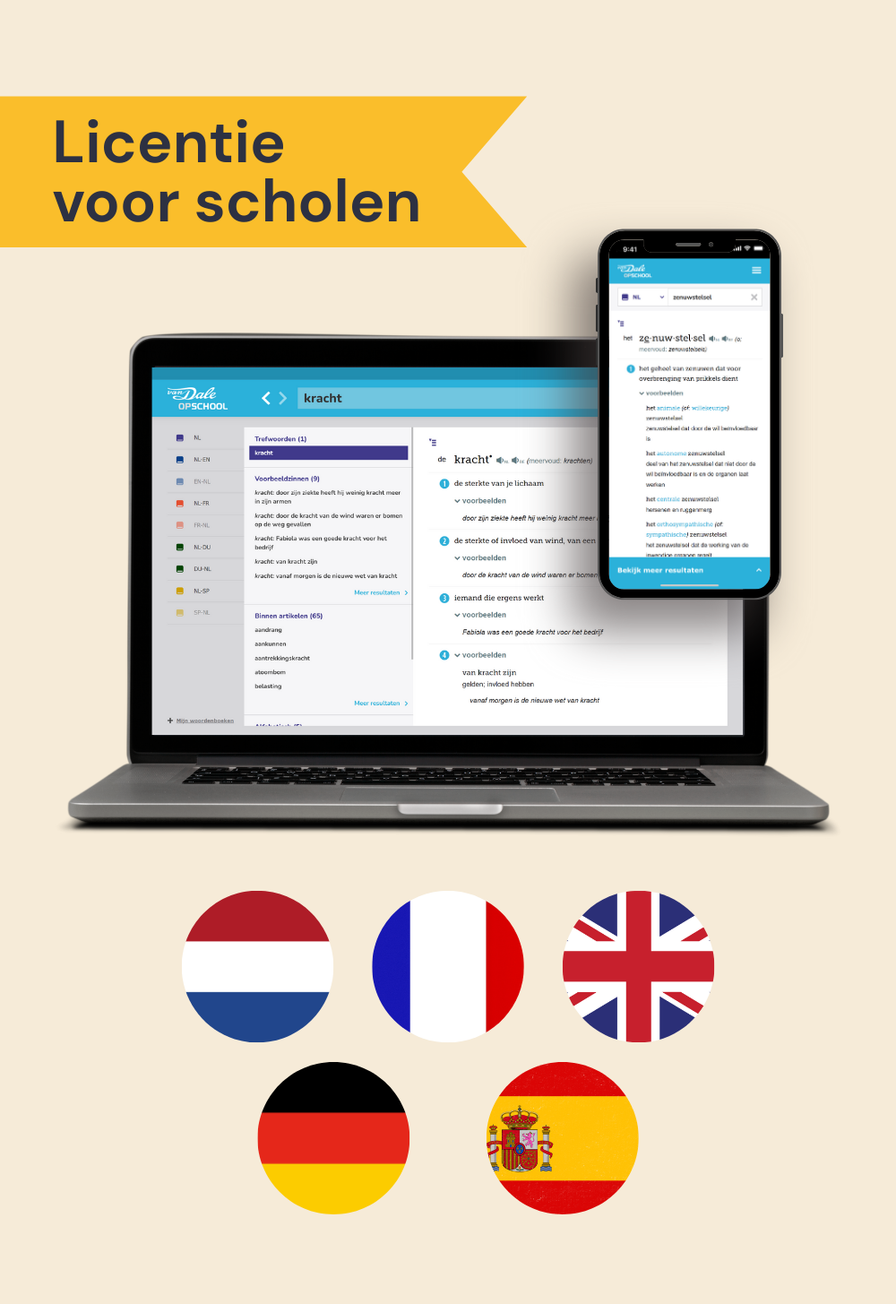 Met Van Dale Online op school hebben leerlingen altijd en overal toegang tot een rijkdom aan woorden en vertalingen op hun digitale apparaten en bij digitale toetsen.